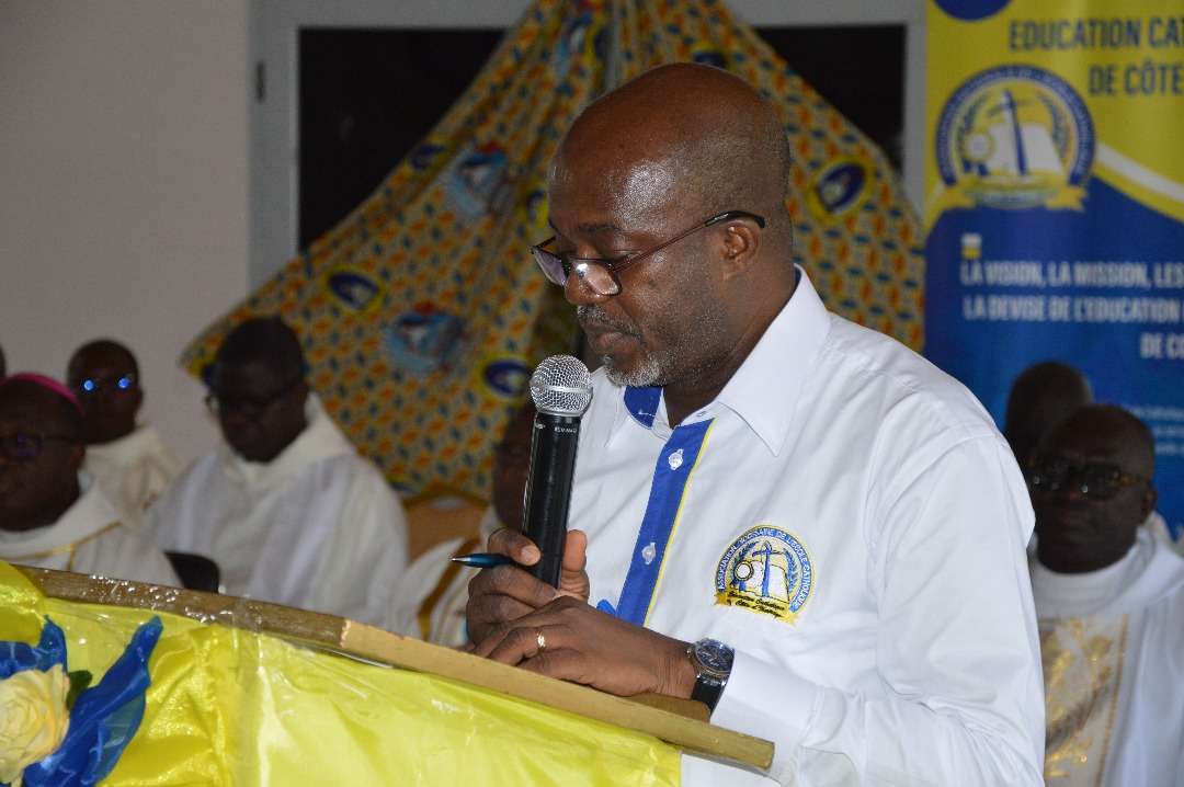 Cette rencontre, dont le maître d'œuvre était le Secrétariat Exécutif National de l'Éducation Catholique, a eu lieu en présence d'environ 200 délégués venus des différents corps, des 15 diocèses du pays et de leurs partenaires. Le Père Félicien GUESSE, nouveau Secrétaire Exécutif National de l'Education Catholique (SENEC), y faisait son entrée. C'est vrai qu'il n'était pas sur un terrain inconnu, il a été pendant de nombreuses années Secrétaire Exécutif Diocésain de l'Éducation Catholique de Gagnoa (SEDEC), mais les défis étaient différents. Cette rencontre du monde éducatif catholique était donc sa première grande activité, lui qui a été nommé lors de la 127è assemblée plénière de la conférence des évêques catholiques de Côte d'Ivoire qui s'est tenue à Kodjoboué, dans le diocèse de Grand Bassam. C'est donc à lui, en tant que secrétaire exécutif, qu'il est revenu de préparer, en collaboration avec son équipe, la réunion, sur tous les plans.